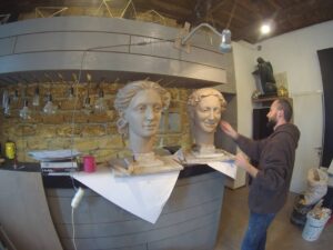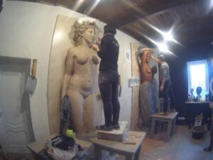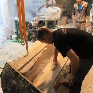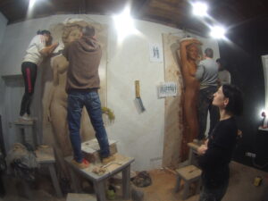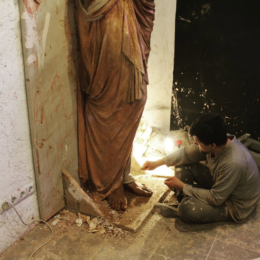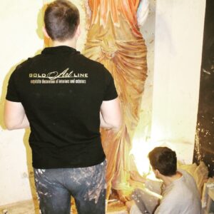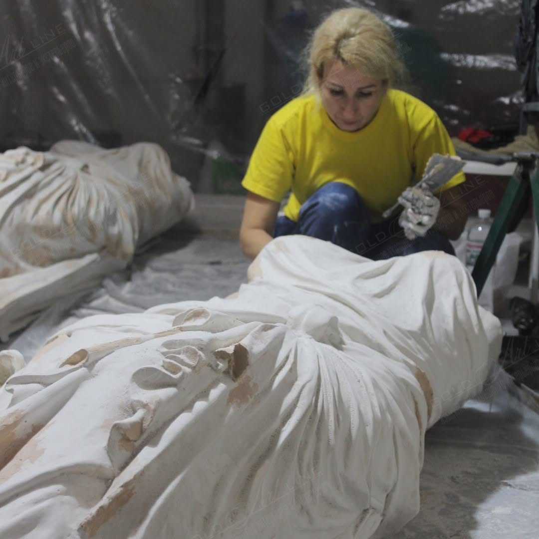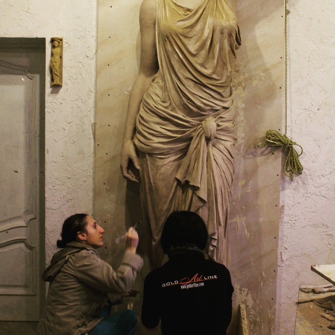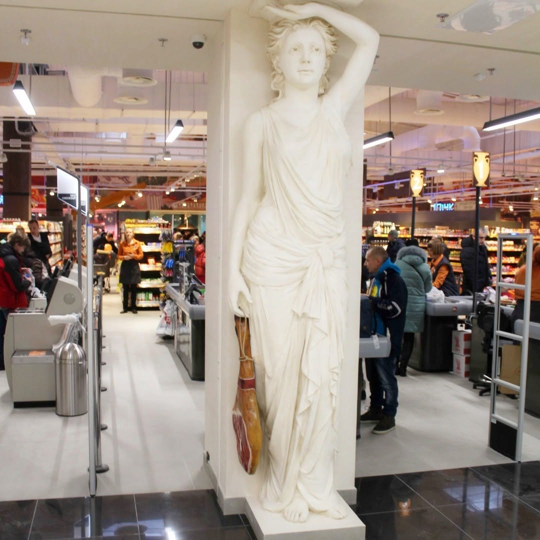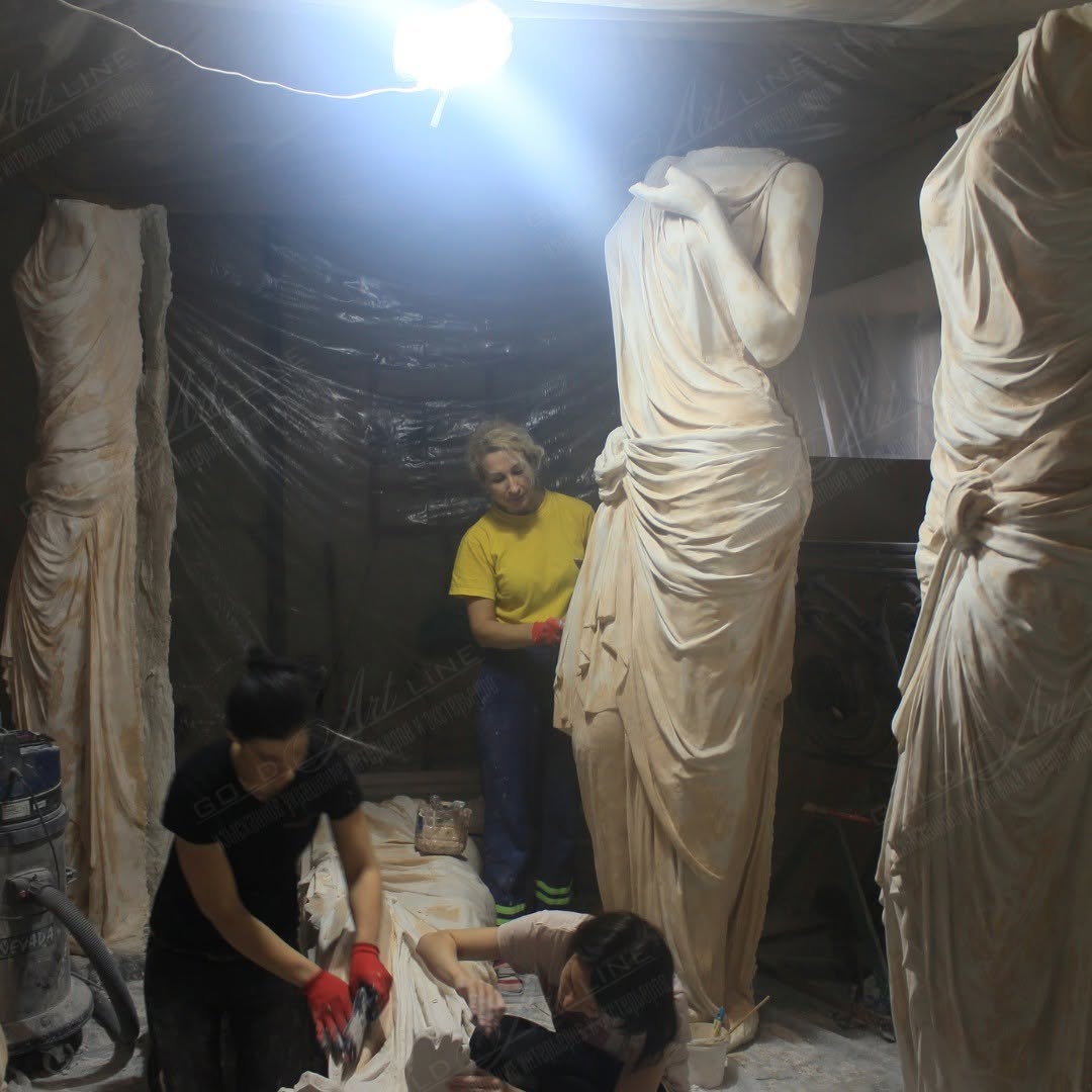 Виконані з текстурованого матеріалу гіпсу та патинуванням, ці фігури гармонійно поєднують в собі античну естетику й сучасний підхід до декору. Каріатиди немов тримають на собі простір — це не лише елемент оформлення, а й візуальна опора, що наповнює приміщення змістом, формою та присутністю.